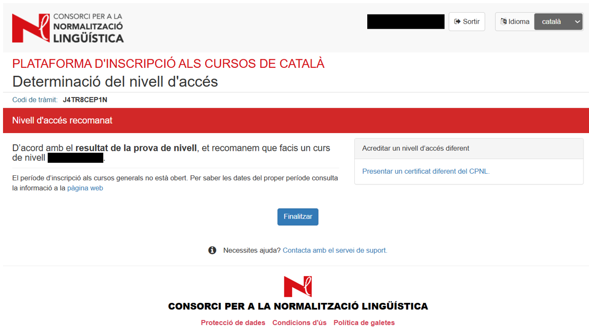 El resultado de la prueba de determinación de nivel no tiene valor de certificación de conocimientos y tampoco garantiza tener plaza en los cursos de catalán.