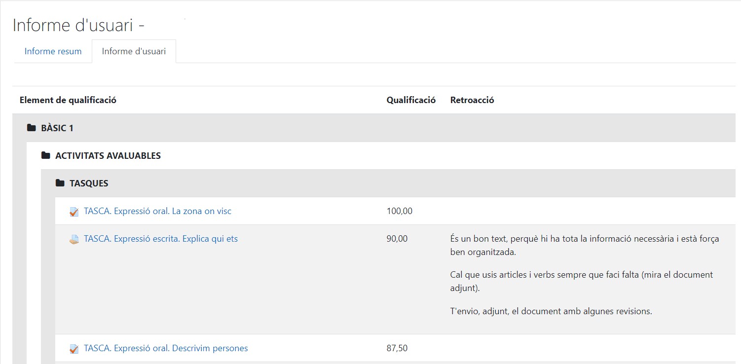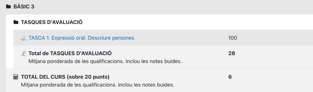 Sur la plateforme d'apprentissage, accédez aux Notes (dans l'index horizontal sous le nom du cours). Vous verrez les notes des tâches d'évaluation avec la pondération correspondante au fur et à mesure que vous effectuerez les différentes tâches, dès que le professeur les aura évaluées.