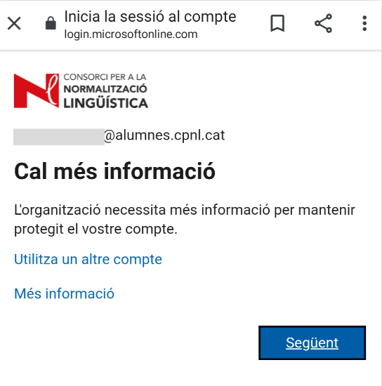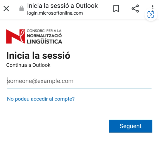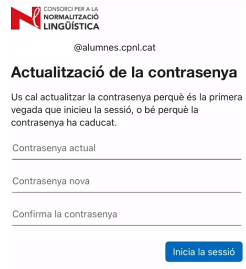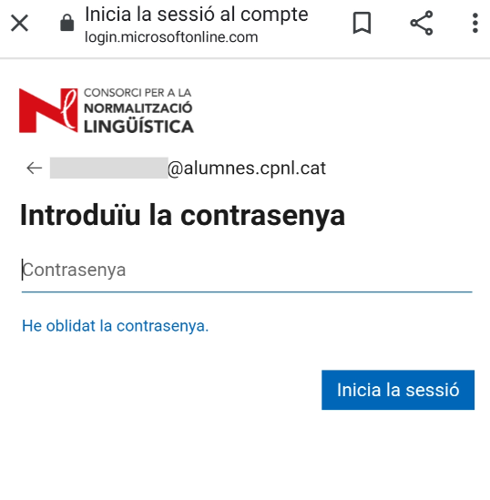 Si vous n’avez pas encore démarré de session avec votre compte d'étudiant, accédez avec votre adresse d'étudiant xxx.xxx(ELIMINAR)@alumnes.cpnl.cat et votre mot de passe.