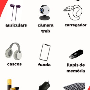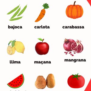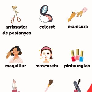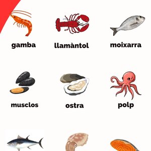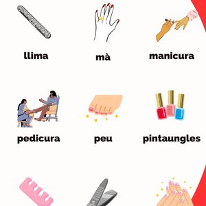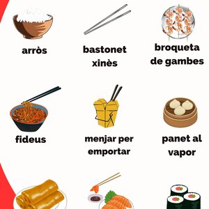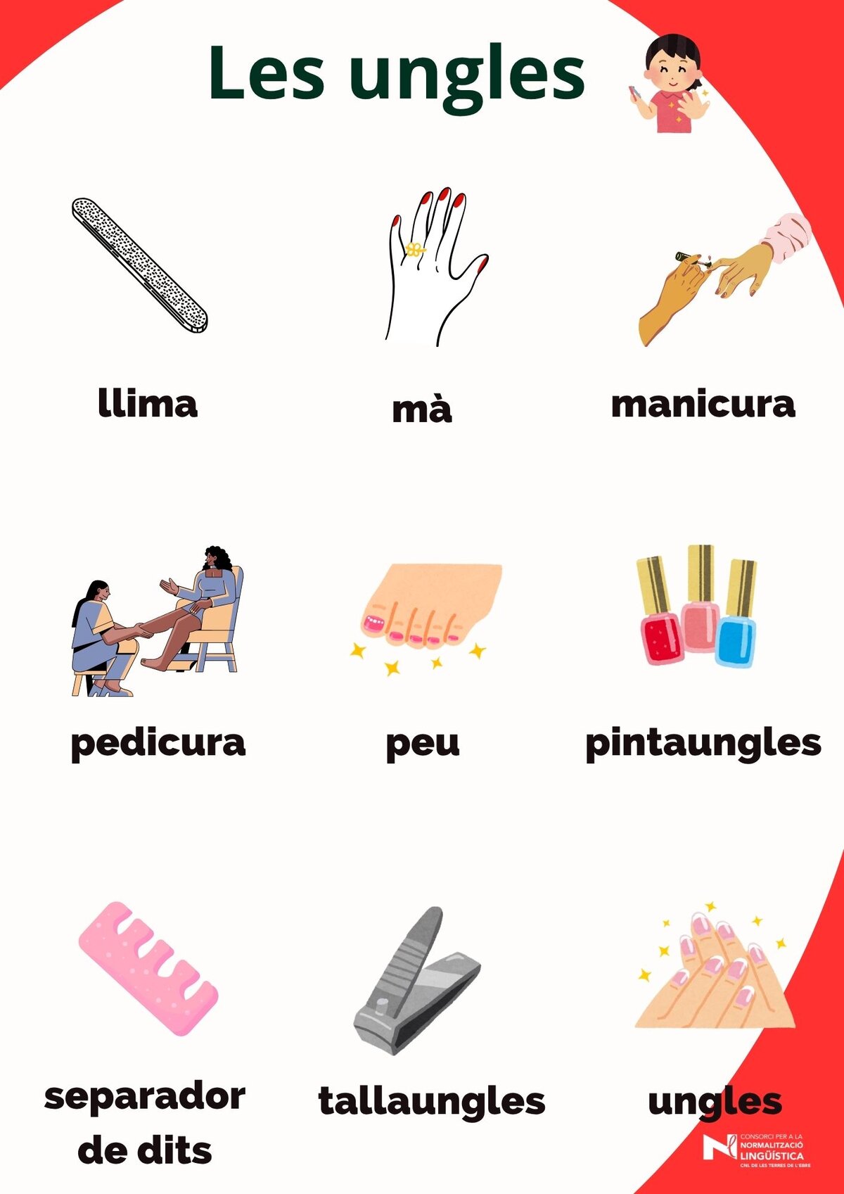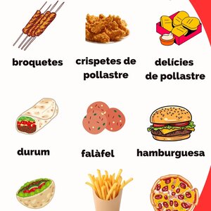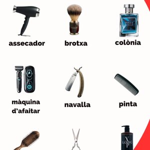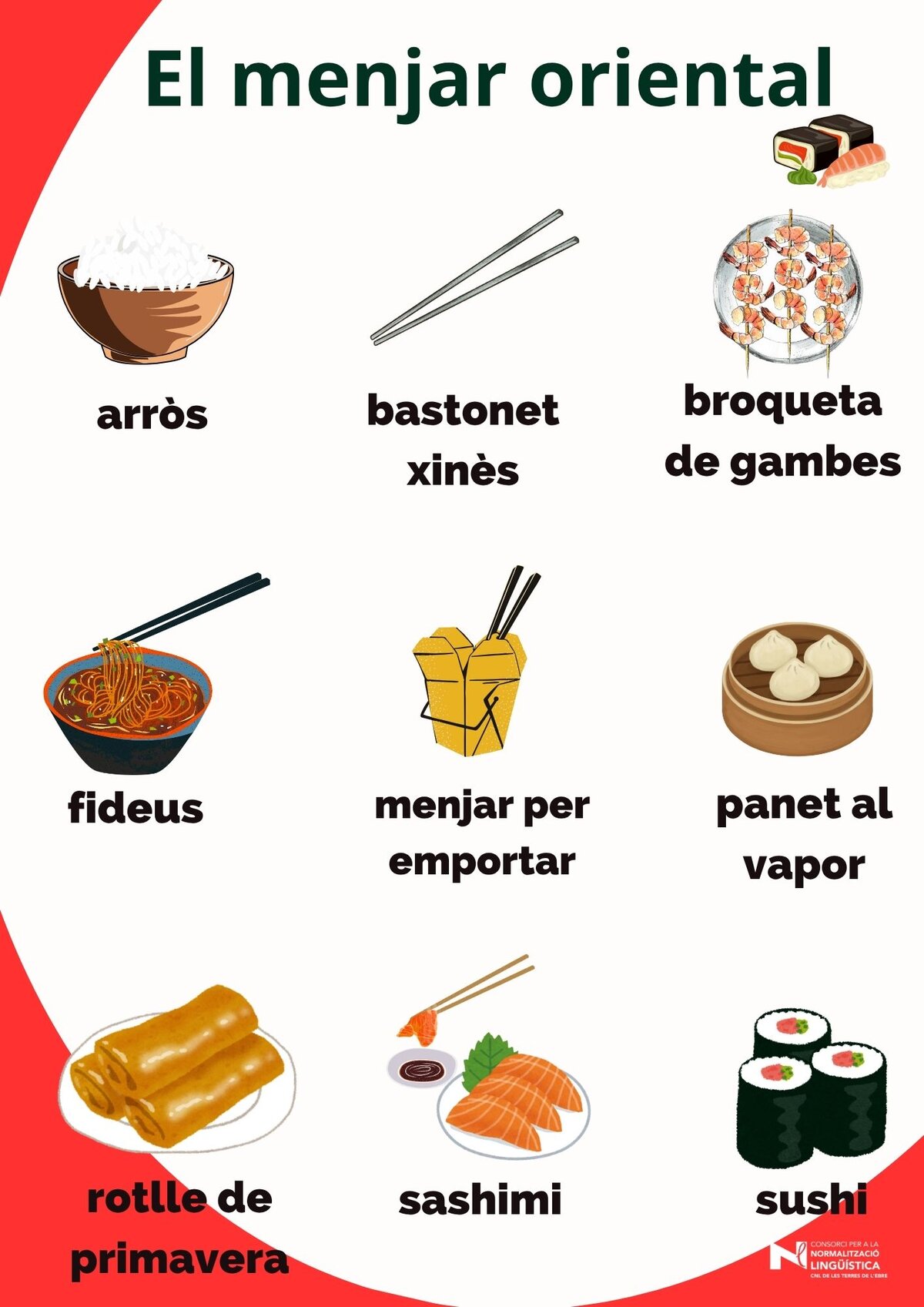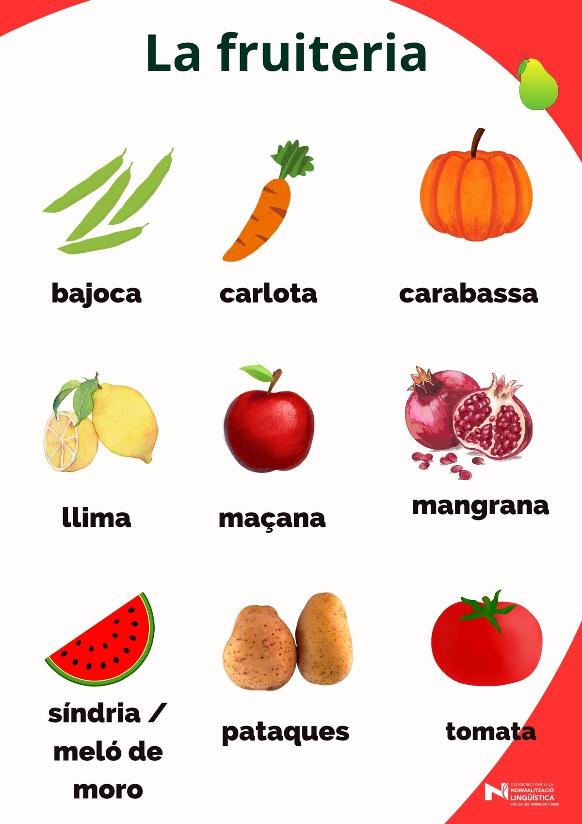 Material divulgatiu que difon el lèxic relacionat amb diferents sectors comercials: la cafeteria, la carnisseria, la carta, l'estètica i les ungles, les fruites i verdures, el menjar oriental, la peixateria, la perruqueria i la tecnologia.