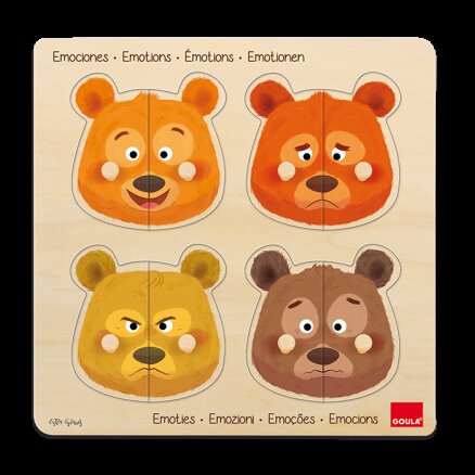 Encaixable de fusta. 4 cares d’ossos amb diferents emocions.