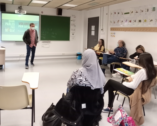 La setmana passada el dinamitzador del programa va visitar diferents aules del nivell Bàsic 2, a només uns dies d'acabar el curs, del CNL L'Heura i una classe d'alumnes de català A1 del Centre de Formació d'Adults Fondo.