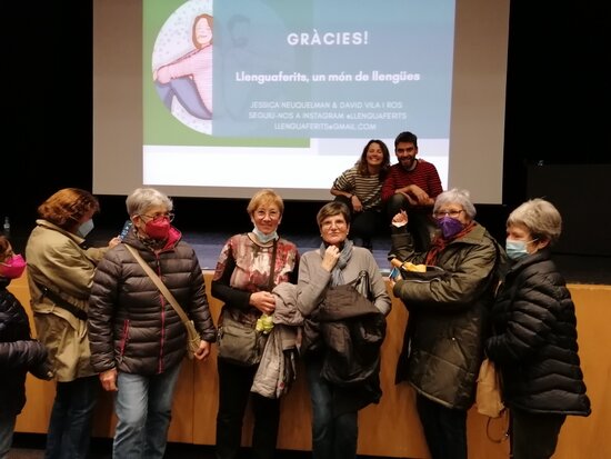 Un petit grup de voluntàries per la llengua van assistir a la conferència de Jessica Neuquelman i David Vila, organitzada per l'Aula d'Extensió Universitària per a la Gent Gran, a l'Auditori de Castellar del Vallès. Tots dos són apassionats de les llengües i les consideren un dels grans patrimonis de la humanitat. Amb Llenguaferits, a través de vídeos i de xerrades, expliquen de manera amena i entretinguda curiositats del català i d'altres llengües d'arreu del món amb l'objectiu de despertar la sensibilitat lingüística i, així, fomentar el respecte per totes les llengües i, en particular, pel català. L'activitat va ser tot un èxit.