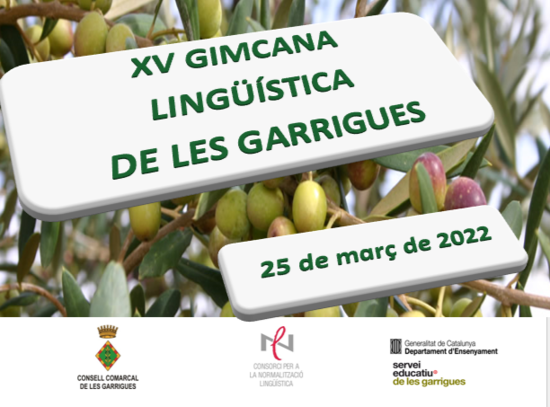 La XV Gimcana Lingüística de les Garrigues, emmarcada dins el Pla Comarcal de Suport a l'Educació, està organitzada pel Servei Educatiu de les Garrigues amb el suport del Consell Comarcal. A la final també hi han col·laborat l'Ajuntament de les Borges Blanques i la Biblioteca Marquès d'Olivart.