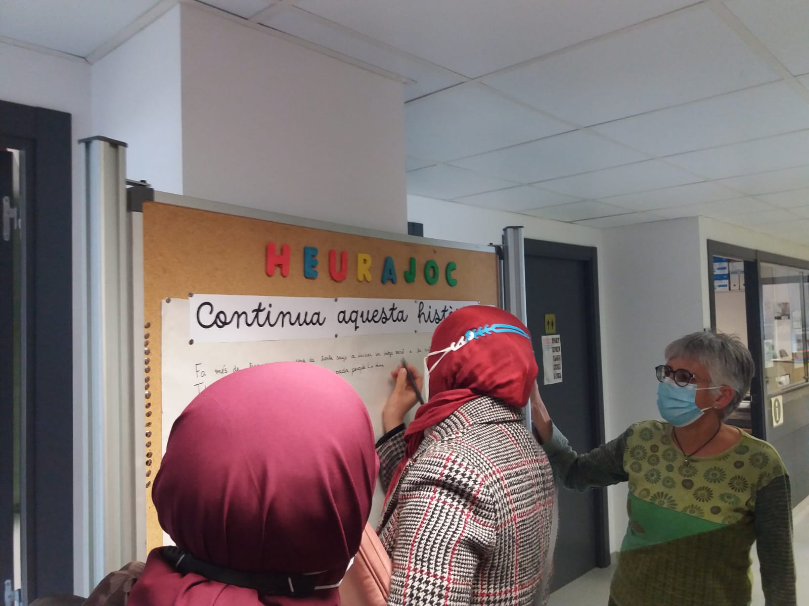Si ens desplacem una mica, no gaire, a l'altra banda del vestíbul ens trobem L'Heurajoc. Aquest cop la proposta de joc s'ha transformat en una invitació a explicar una història.