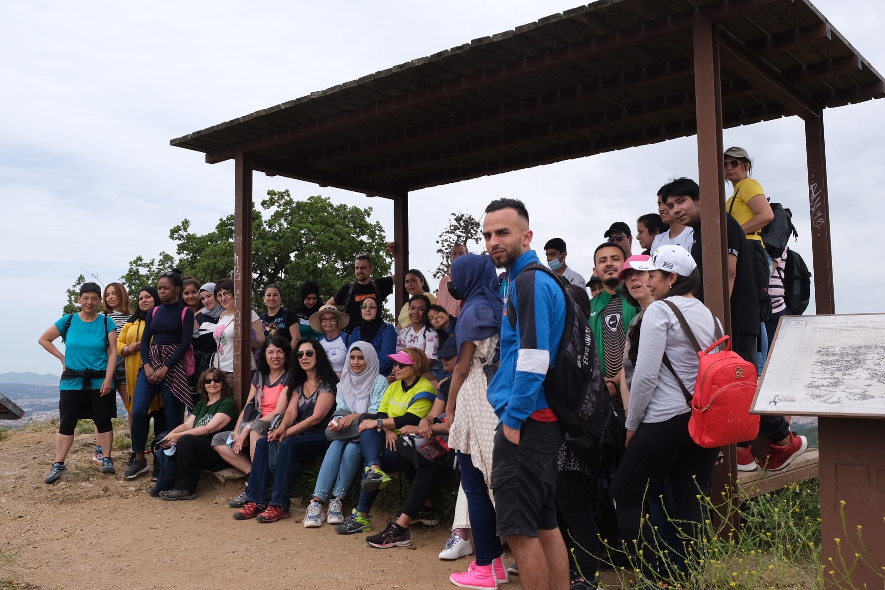 Més de 40 persones van començar la ruta a la Font de Sant Roc, també coneguda com a Font del Drapet, i després d'una bona pujada van arribar al mirador, als peus del poblat que està situat al parc de la Serralada de Marina, a la part alta del turó del Pollo, de 303 m d'alçada.
