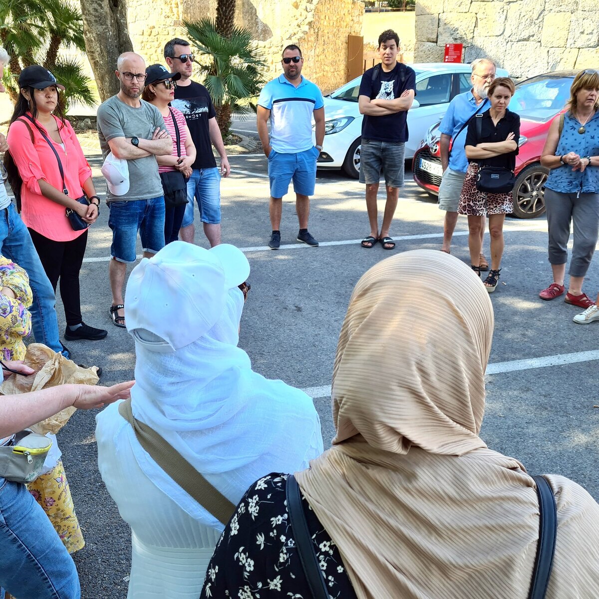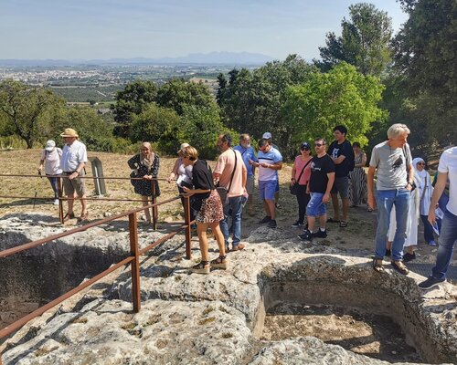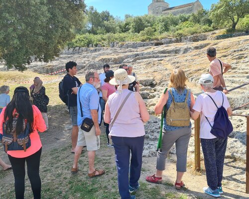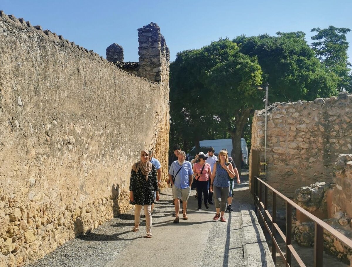La visita es va iniciar a l'interior, al Centre d'Interpretació, i va seguir fent un recorregut per l'exterior del conjunt arqueològic: la muralla, la gran cisterna, la torre talaia, del temps dels romans, i l'església i la necròpolis de l'època medieval. Els assistents va poder gaudir del paisatge magnífic i de les vistes espectaculars d'aquest indret, que els antics pobladors van saber escollir tan bé per als seus enclavaments.