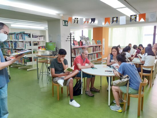 Els alumnes del curs bàsic 1 de català de la Llagosta acaben el curs amb una visita a la Biblioteca Municipal, que aquest any commemora els 50 anys de vida. El director de la Biblioteca els explica els serveis que ofereix aquest equipament i alguns dels alumnes aprofiten per fer-se’n el carnet de préstec. Així, tots surten amb el llibre de lectura que han triat sota el braç per gaudir del català aquest estiu.
