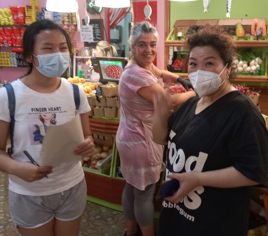 L'activitat els feia passar per l'Ajuntament, l'OIAC, la Biblioteca Central i acabava a l'establiment col·laborador del Voluntariat per la llengua Horta Meya. Aquesta última part, a més, implicava que fessin algunes preguntes a les treballadores (Com et dius? Quant val un quilo de pomes?).