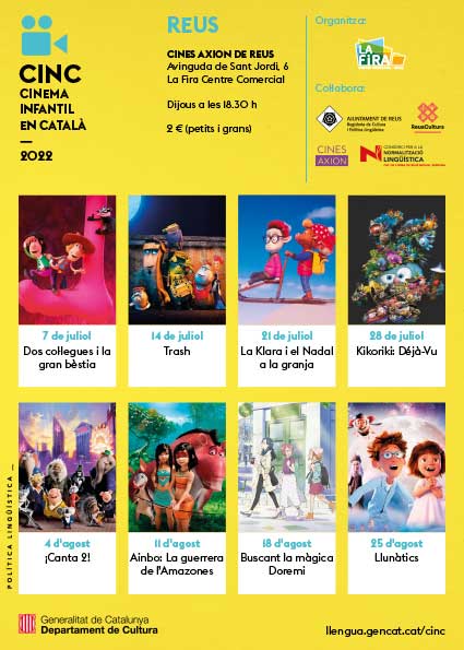 El cine en català triomfa a Reus. El CINC, Cicle de Cinema Infantil en Català que s'ha dut a terme a La Fira Centre Comercial clou la seva edició de 2022 amb unes xifres immillorables: 1.028 espectadors i totes les entrades exhaurides, la majoria venudes abans del dia de la projecció gràcies a la compra en línia.