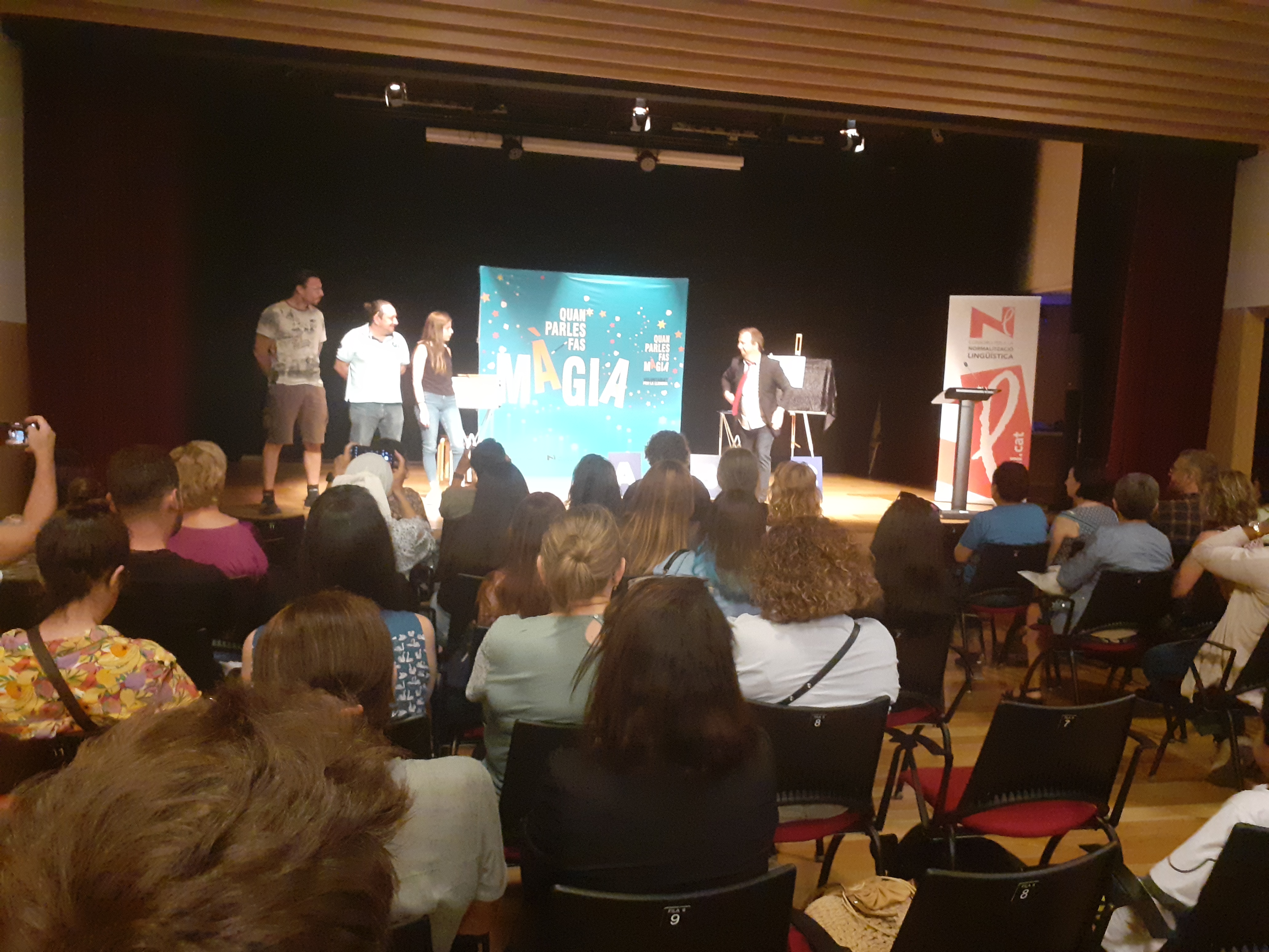Un cop presentat l'acte, s'ha donat pas al mag Eduard Juanola i a l'espectacle "Quan parles fas màgia", amb el qual el públic ha passat una gran vetllada amb els fabulosos trucs de màgia del protagonista de la sèrie de vídeos "Màgia per conversar". Durant aproximadament 50 minuts alumnes, voluntaris i aprenents han pogut gaudir d'un espectacle dinàmic i participatiu que ha fet riure i ha sorprès molts, alhora que els ha animat a continuar fent màgia amb les paraules, amb la parla.