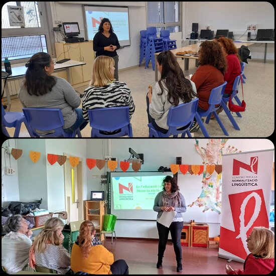 En aquest darrer trimestre de l'any, s'han organitzat unes sessions de sensibilització per a les monitores del menjador de l'escola Pau Casals i Sant Jordi amb la finalitat de conèixer l'ús del català que tenen els nens i nenes en sortir de classe, des que van al menjador de l'escola fins que tornen a les classes de la tarda. En una primer sessió es presenta el tema i es demana fer una observació durant unes setmanes per treure'n conclusions en una segona sessió.