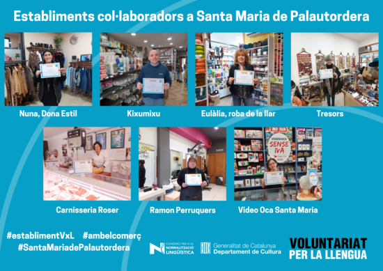 D'altra banda, set comerços del poble han donat suport al Voluntariat per la llengua, signant una adhesió, i ja formen part de la xarxa d’establiments que col·laboren a promoure el català en sector comercial, i són: Kisumixu (botiga d’animals de companyia i complements); Carnisseria Roser; Eulàlia – Roba de la llar; Nuna, Dona estil; Tresors (complements), Ramon Perruquers i Video Oca Santa Maria (jocs i joguines)