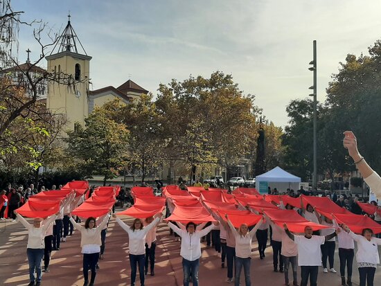 L'activitat participativa central va tenir lloc a dos quarts de dotze i va consistir en ballar i fer una performance anomenada "Sabadell es mou com un sol cor", a partir de la cançó "Junts som un sol cor", creada l'any passat en el marc del Dia Internacional del Voluntariat. Després de tres convocatòries amb assajos previs i, sumant-hi els assistents del moment, es van seguir els passos marcats per la coreògrafa Laia Vila, de la Companyia Petit Món, i es va crear un cor gegant amb mocadors vermells al bell mig de la plaça.