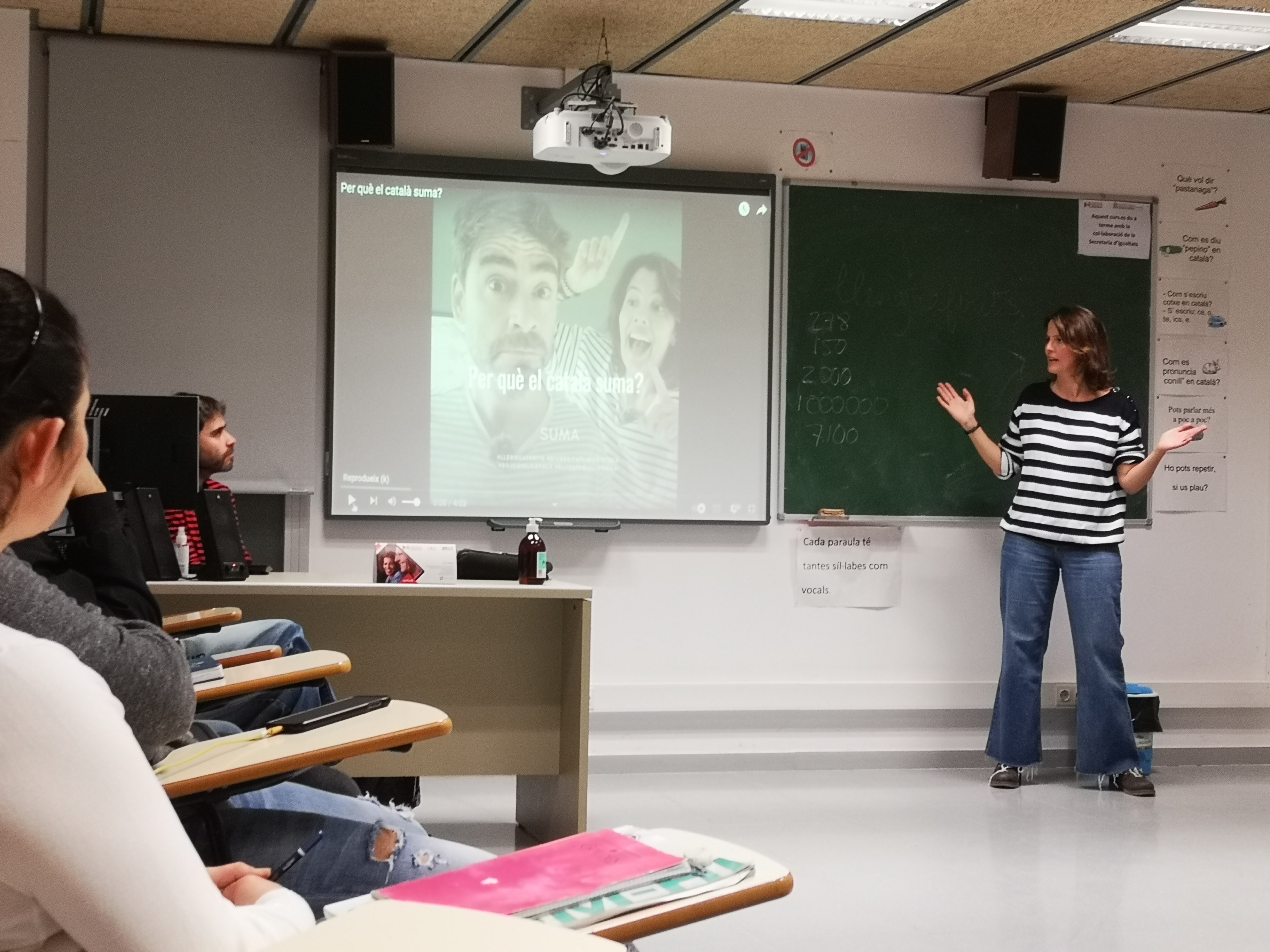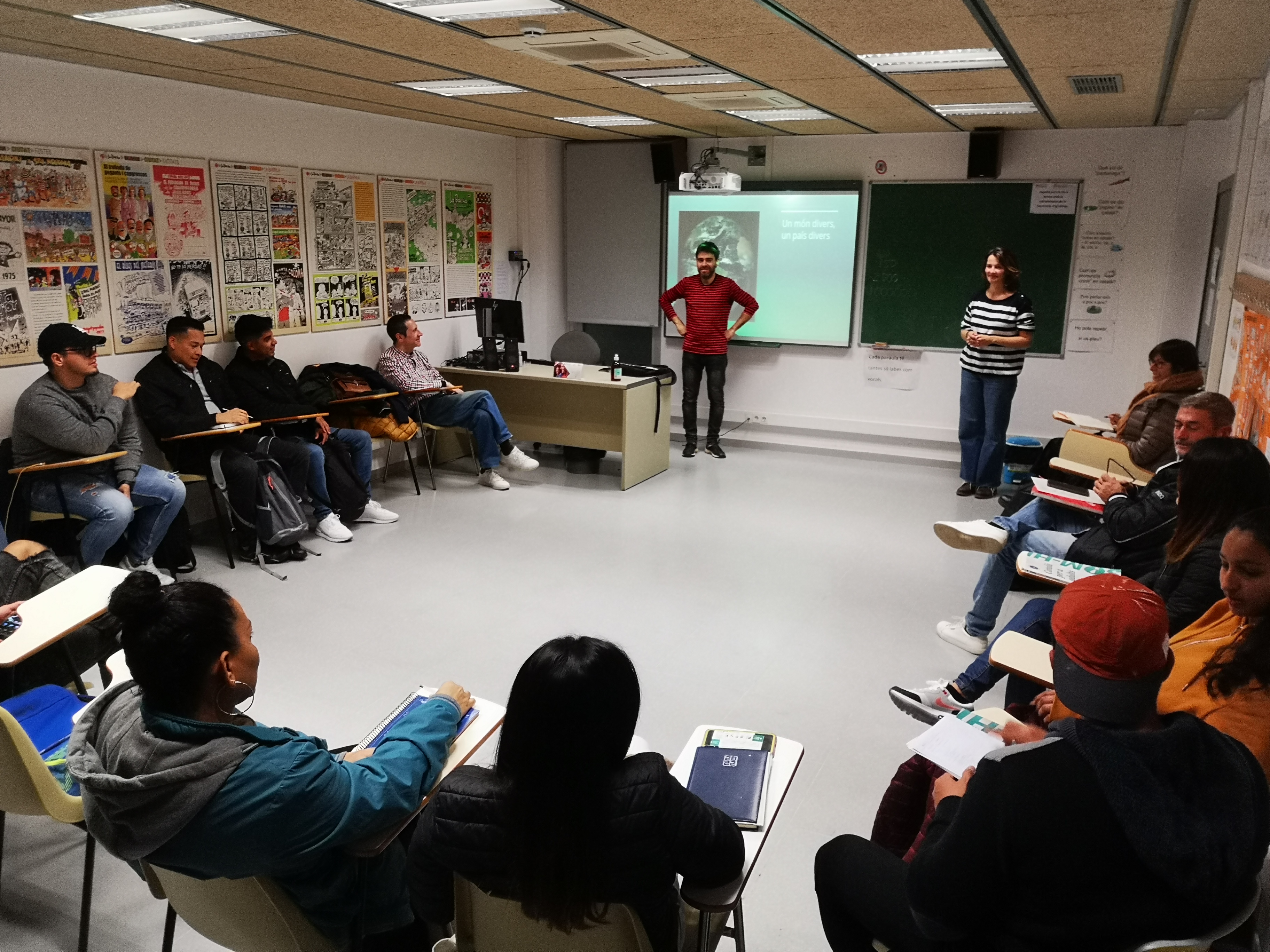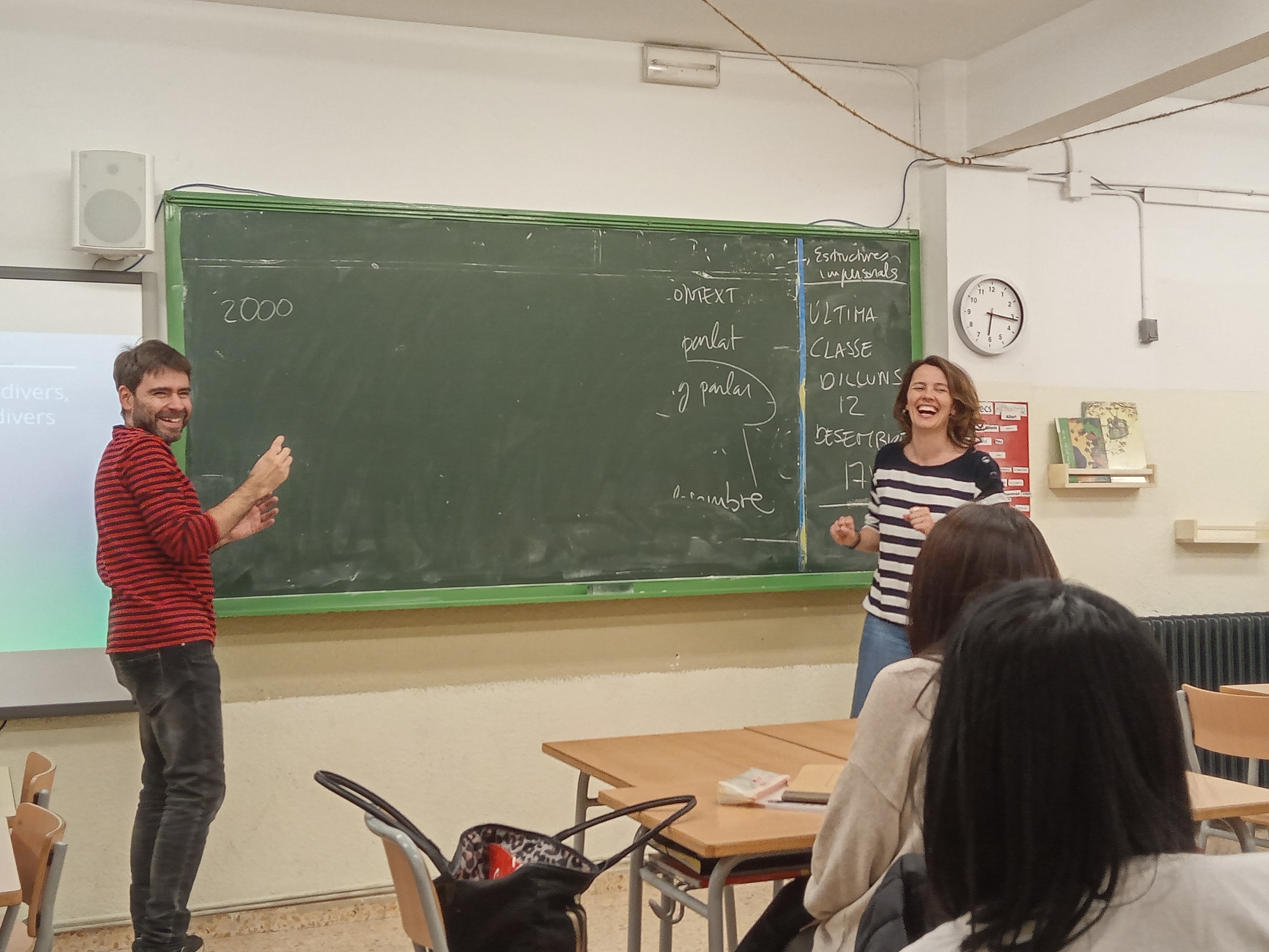 El tàndem Llenguaferits imparteix un taller als cursos del Bàsic 1 i Elemental 1sobre la importància d'aprendre el català.
