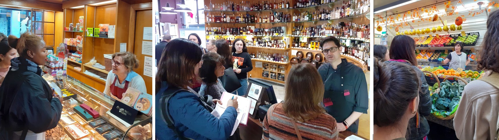 | Pràctiques lingüístiques d'alumnes de Bàsic 2 als establiments Pastisseria Blanch, Vins Avinyó i Fruites i Verdures Montse. |