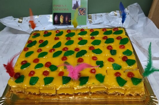 Després hi ha hagut l'explicació de la mona i se n'ha mostrat una d'enorme, elaborada per un coneguda pastisseria de Berga, que ha cridat l'atenció dels oients per saber com s'havia preparat i per tastar-la.