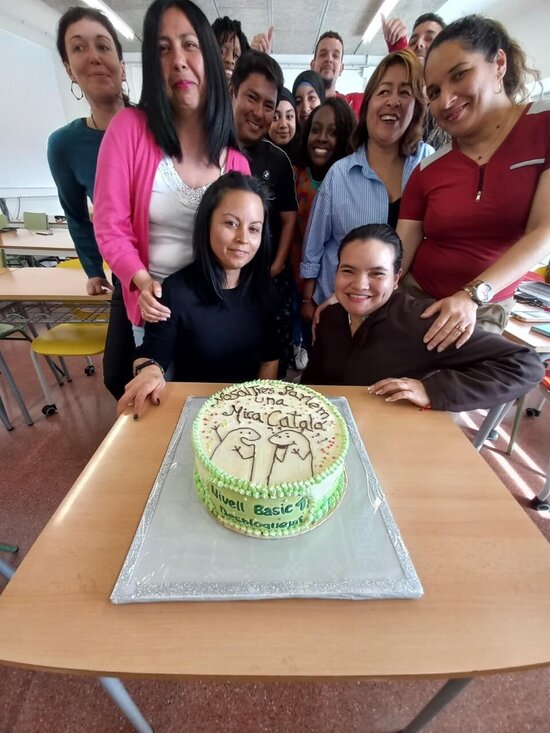 Aprofitant el tema de l'alimentació, l'Aura, una de les aprenents, amb la complicitat dels seus companys, va preparar un bonic pastís amb la finalitat d'explicar, en català, com l'havia preparat i els ingredients que hi duia. Així mateix, va aprofitar per agrair, juntament amb la resta de l’alumnat, el seu pas pel curs.