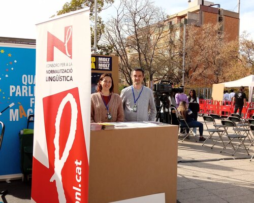 Des de l'estand del CNL L'Heura vam explicar els cursos de català, el Voluntariat per la Llengua, el Servei d'Assessorament Lingüístic i recursos en línia, el pla Yingxin i diverses activitats de foment de l'ús que organitzem a la ciutat, com ara el cicle de cinema en català o el club de lectura fàcil.