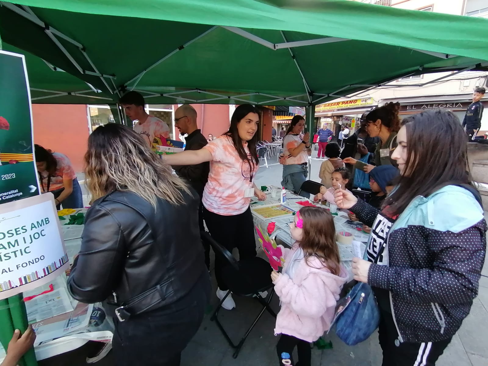 Més d'un centenar d'infants i joves de diferents orígens van participar a l’activitat que van fer Joves Artistes Kolomencs (JAK), l'Associació Cultural Popular Xinesa i el CNL L'Heura. Primer, els participants practicaven la llengua amb jocs lingüístics i, a continuació, els monitors de JAK els ensenyaven a fer una rosa de paper crespat. En acabar podien passar pel fotoreclam. Un cop completats tres tallers de la plaça, tots els participants podien recollir un llibre de la paradeta com a obsequi.