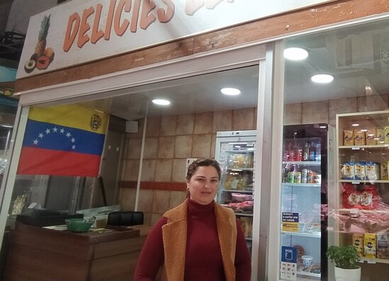 La Gabriela, de Delícies Llatines, una parada del Mercat de la Independència de Terrassa, participa en el programa Comerços aprenents per poder atendre la clientela que li parla en català