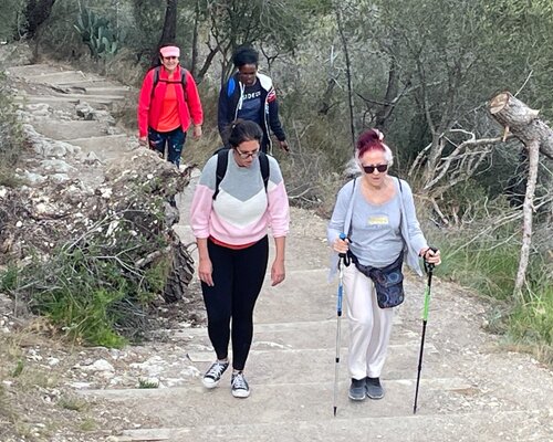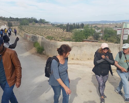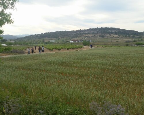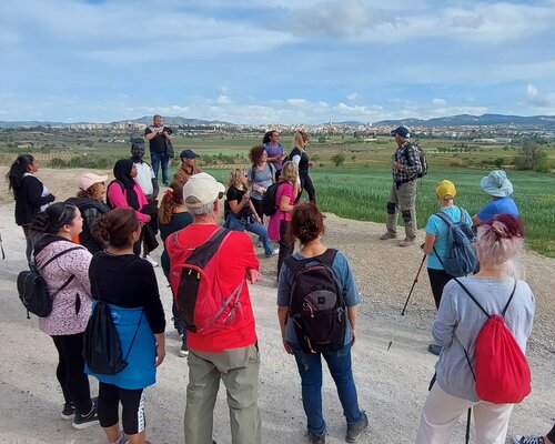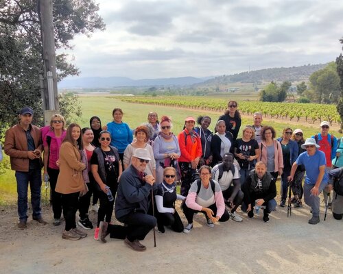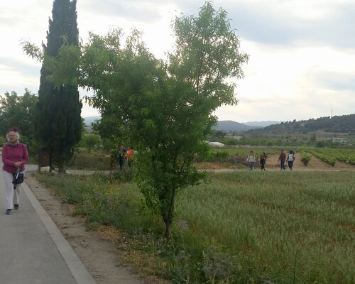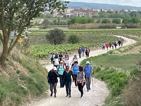 La muntanya, la plana, la vinya i els conreus donaven testimoni de la gran riquesa paisatgística dels 5 km de ruta circular. La guia de l'excursió va anar a càrrec de dos voluntaris, la Montserrat Garriga i el Joan Mateu. La idea va sorgir de la Montserrat. Ella i la seva parella lingüística, la Laura, sempre feien les converses caminant pels voltants de Vilafranca i a aquesta hora de conversa i natura li van posar el nom de Passejades parlades.