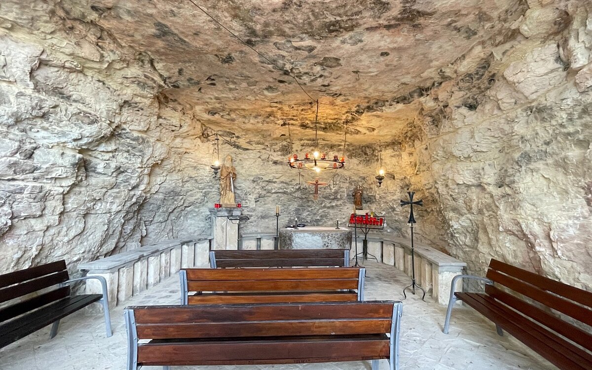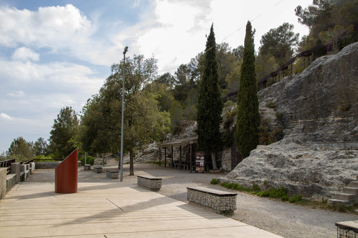 Al 1324, el rei Jaume II va autoritzar als jueus de Vilafranca la segona sinagoga de la població a la muntanya de Sant Pau. La cessió va durar 60 anys, fins que l'indret va passar a mans dels ermitans de Pacs. D'aquella època no en queda res. La cova actual hauria estat l'absis d'una nova ermita que s'hi havia de construir a principis del segle XX, però que no es va poder portar a terme. La roca de l'ermita és calcària i es va formar fa uns 18 milions d'anys. A la ruta encara s'hi troben restes de fòssils que ho corroboren.