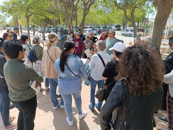 Alumnes i parelles lingüístiques han gaudit d'una passejada guiada i comentada arran de mar, a patir dels elements patrimonials aixecats a la vora del mar al llarg del temps, a càrrec de Josep M. Barris, arxiver municipal