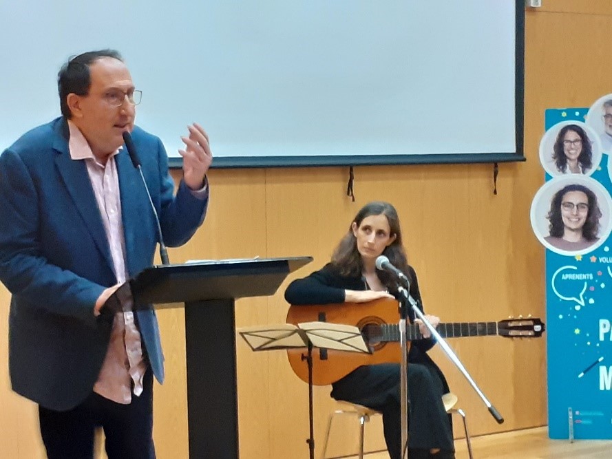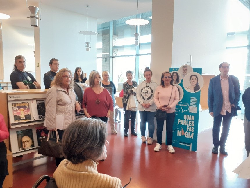 Per celebrar Sant Jordi i el nou Punt de trobada del Voluntariat per la llengua, el 21 d'abril, les parelles lingüístiques i els poetes locals Francesc-Xavier Simarro i Toni Alcalà van oferir un recital de poesia a la sala polivalent de la Biblioteca Sant Ildefons.