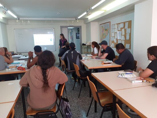 Els alumnes de català del tercer trimestre del curs 22-23 han rebut a l'aula la visita de la tècnica de Nova Ciutadania i Polítiques Migratòries de l'Ajuntament de la Llagosta, Carme Ferrer.