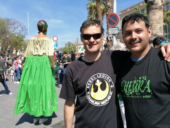 V: Xerrem mentre prenem alguna cosa o, de vegades, mentre fem una activitat alternativa, com ara anar al bateig de l'Heura, la nova geganta de Santa Coloma.