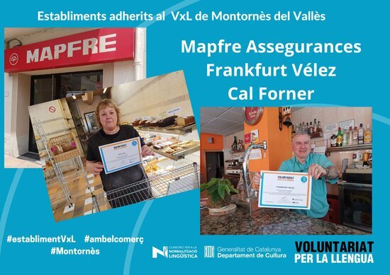 Els nous comerços que s’han adherit al programa del Voluntariat per la llengua són el Frankfurt Vélez II, Cal forner i Mapfre Assegurances Montornès. Aquests establiments havien estat col·laboradors abans de 2020 i per tant els hem tornat a visitar per refer vincles i ampliar la xarxa d’espais d’ús de la llengua.