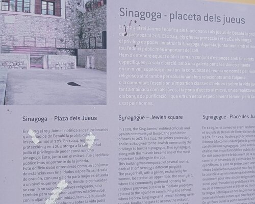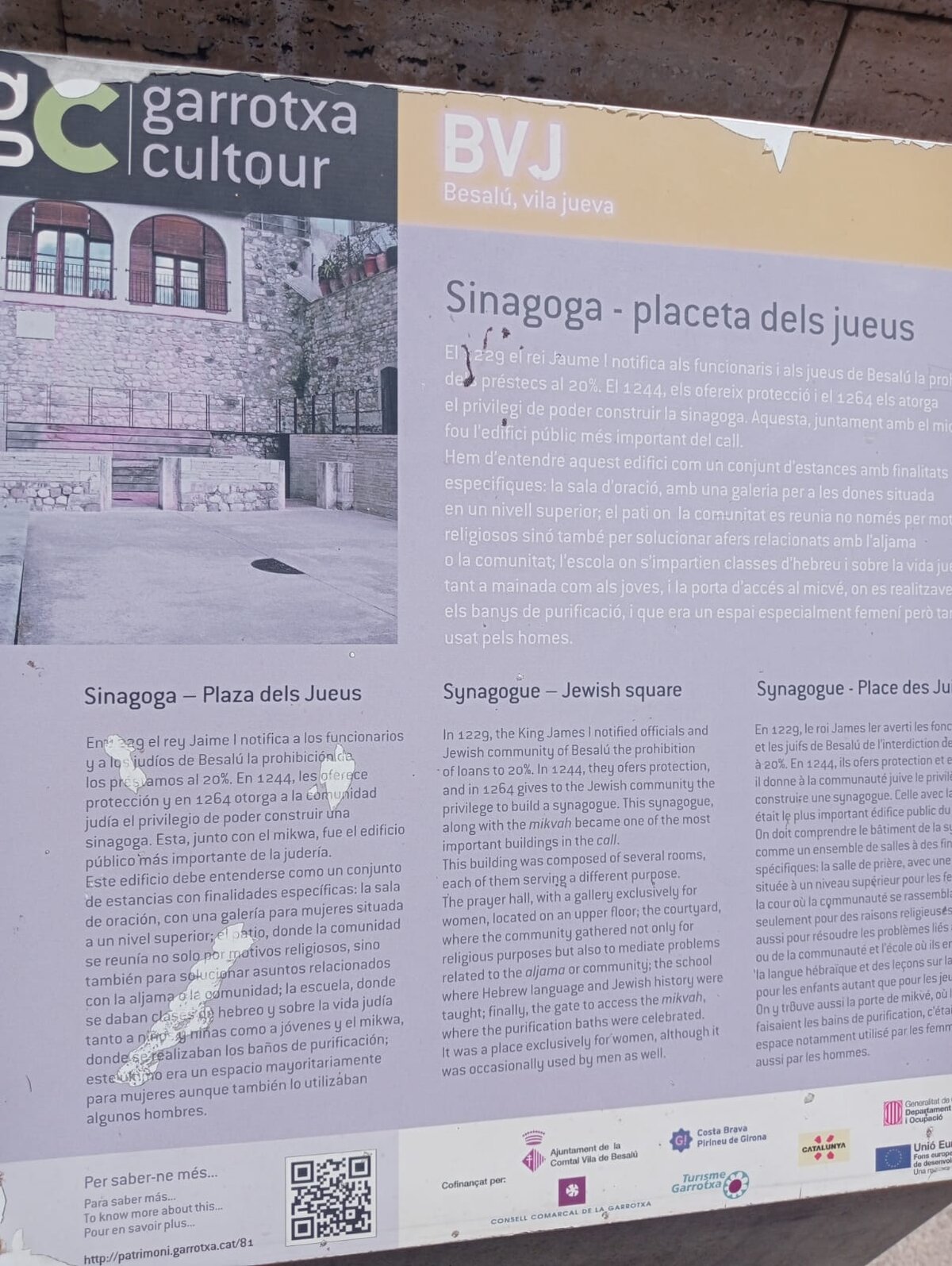 Besalú fou la seu d'un important comtat independent, el seu conjunt medieval és considerat com un dels més ben conservats de Catalunya. El grup va visitar l'antiga església del monestir de Sant Pere del segle XII, el call jueu, la sinagoga i el Miqvé (banys rituals jueus) que amb el de Girona són els únics recintes de banys jueus descoberts fins ara a la Península Ibèrica. Per descomptat que la visita al majestuós pont romànic sobre el riu Fluvià no va deixar indiferent a ningú.