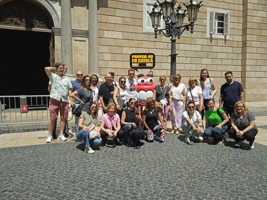 Finalment, es van fer una foto plegats amb la Queta al davant del Palau de la Generalitat per donar suport a la campanya de Cultura de promoció de la nostra llengua.