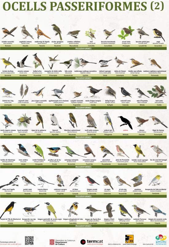 El Centre de Normalització Lingüística de les Terres de l’Ebre (CNLTE) distribueix pòsters sobre la terminologia de moixons passeriformes.