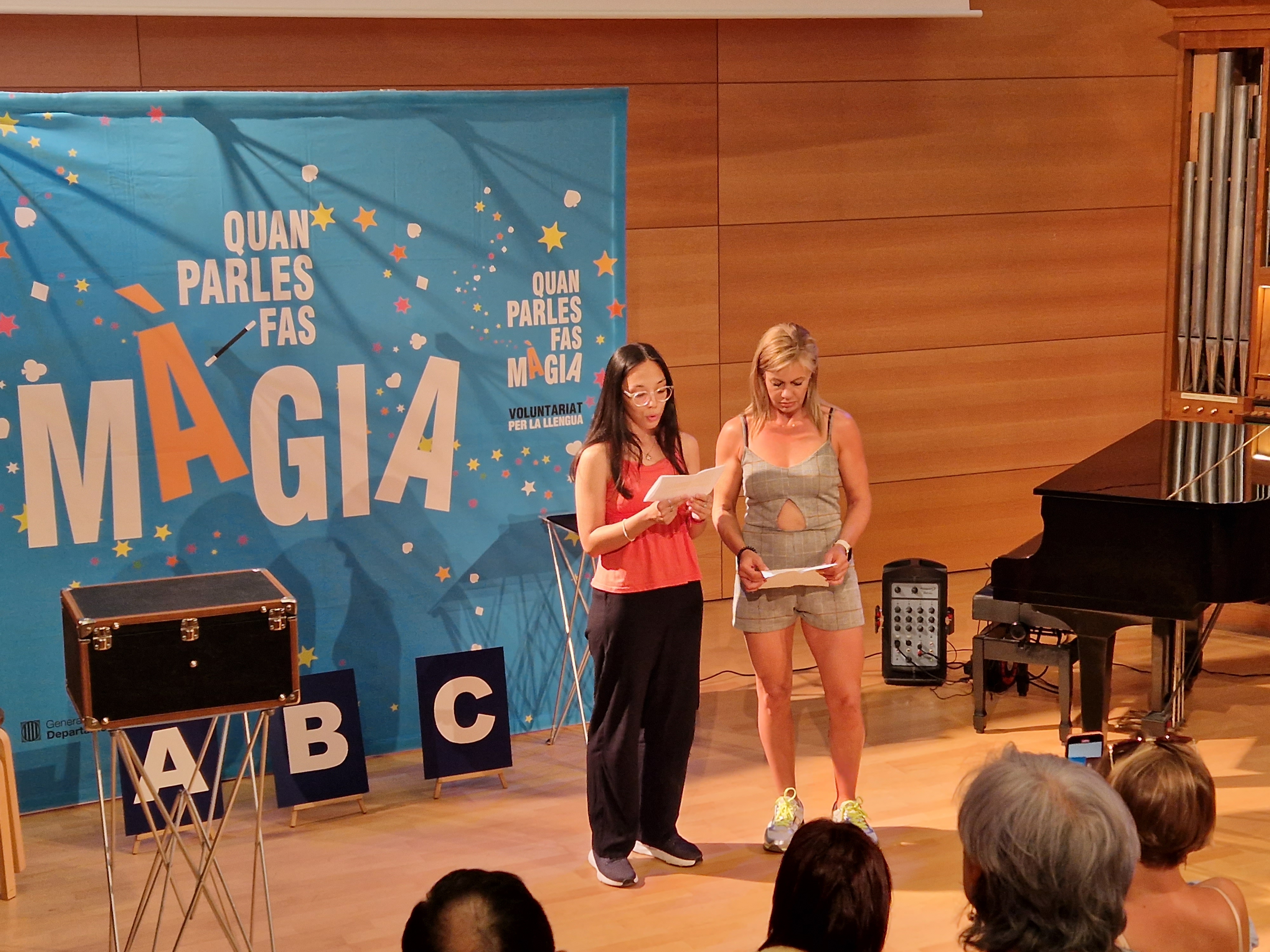 A tots els actes es va fer un reconeixement als nostres col·laboradors. Per exemple, als establiments col·laboradors de cada localitat (155 a tot el CNL), que són espais segurs on els aprenents poden practicar el català amb un clima de confiança suficient. També, en el cas de Tarragona, es va agrair el compromís del Club Diògenes, una entitat dedicada a difondre els jocs de taula que han anat a les aules a fer jugar els alumnes en català. I finalment, als voluntaris, que dediquen una hora a la setmana a xerrar en català amb els alumnes.