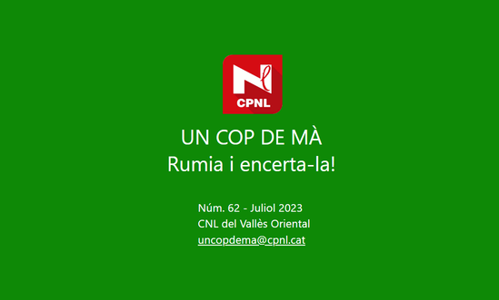 Restem, com sempre, a la vostra disposició per respondre qualsevol pregunta o consulta que ens vulgueu formular i us animem a fer-nos arribar (uncopdema(ELIMINAR)@cpnl.cat) idees o suggeriments que procurarem incloure en noves edicions.