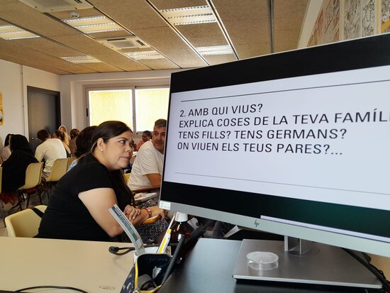 L'activitat consisteix en posar en pràctica tot el que han après durant el curs. Cada 5 minuts aproximadament, han de canviar de parella lingüística per conversar sobre una pregunta diferent. Els alumnes s'han posat a parlar en català amb alumnes d’un altre curs que no coneixien i han establert animades converses.
