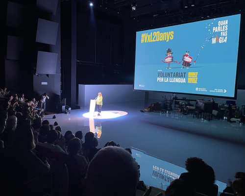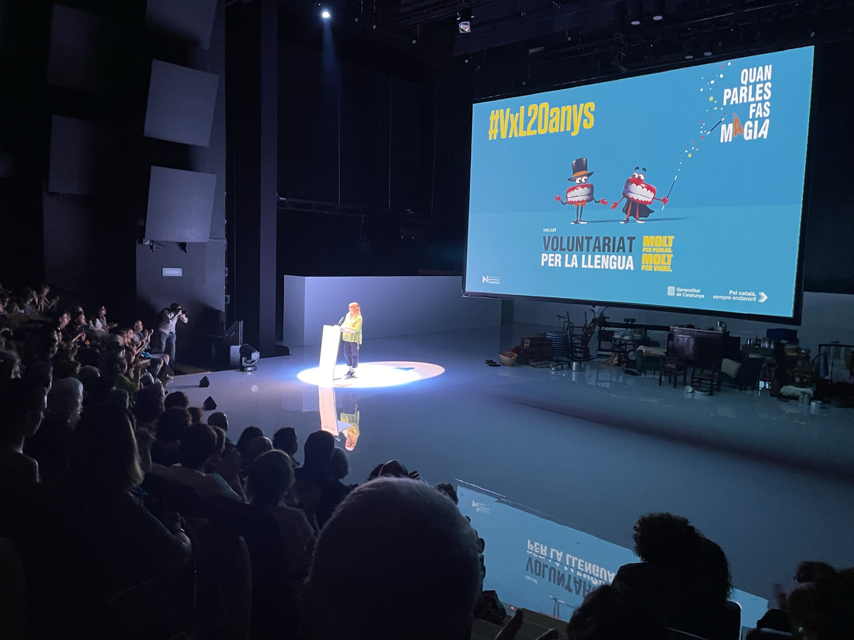 El programa de parelles lingüístiques Voluntariat per la llengua (VxL) ha celebrat el seu 20è aniversari, en un acte que ha reunit més de 800 persones, majoritàriament participants de les parelles lingüístiques de tot Catalunya, així com col·laboradors del programa. La consellera de Cultura, Natàlia Garriga, ha participat en la celebració, que va tenir lloc ahir al vespre al Teatre Nacional de Catalunya (TNC).