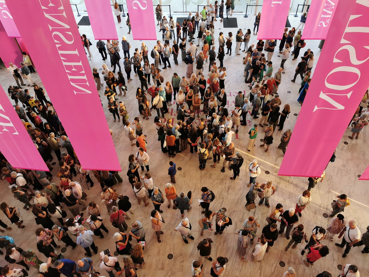 Al vestíbul del TNC, els convidats han visitat l'exposició "Quan parles fas màgia" del Voluntariat per la llengua i una exposició sobre Mercè Rodoreda. Durant la recepció, s'han repartit obsequis de marxandatge del Voluntariat per la llengua i el mag Eduard Juanola ha sorprès els assistents amb jocs de màgia en directe com els que protagonitza en la col·lecció de vídeos Màgia per conversar, recurs audiovisual per fomentar la conversa en les trobades que fan les parelles lingüístiques.