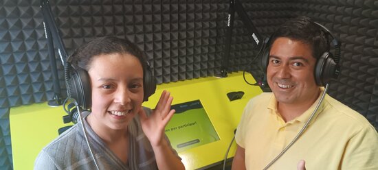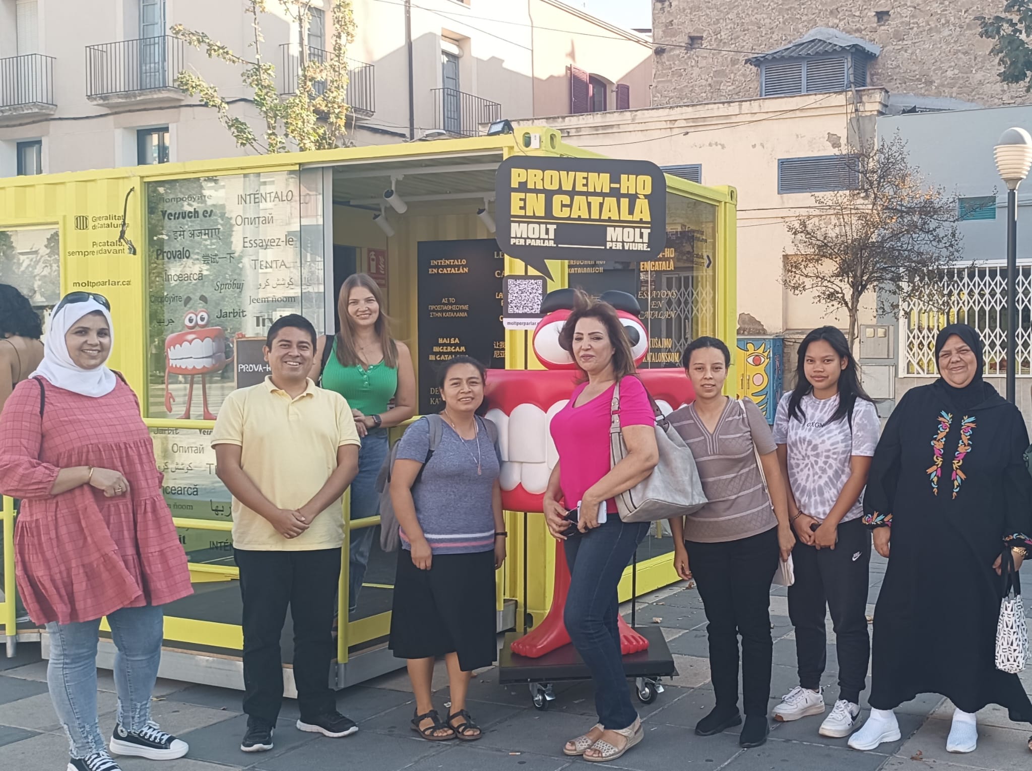 Els alumnes del curs Bàsic 3 del Servei Local de Català d'Igualada van visitar la cabina radiofònica de la Queta, instal·lada a la plaça de Cal Font, per impulsar l'ús del català.
