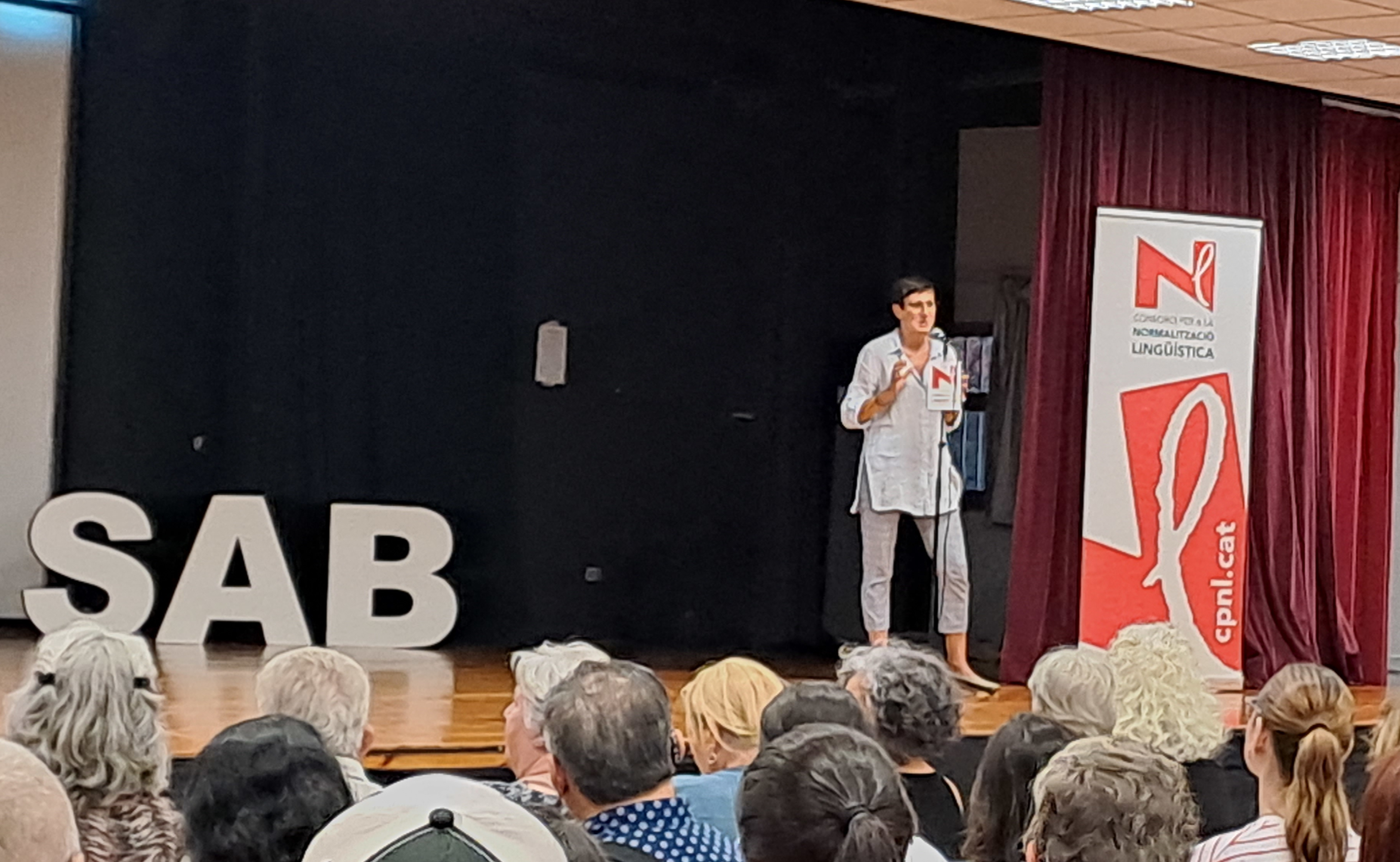 L'acte, que va estar carregat de sorpreses i que no va deixar indiferent ningú, va comptar amb la presència d'alumnes dels cursos de català i de participants del Voluntariat per la llengua (VxL), programa que aquest any celebra els seus 20 anys. Per commemorar aquest aniversari tan especial, es va convidar els voluntaris a pujar a l'escenari per agrair-los la seva important tasca i per bufar les espelmes d'un enorme pastís virtual. A continuació, es van sortejar tres lots de regals entre el públic, amb entrades per al teatre, llibres i material educatiu i la directora del Centre, Emma Giménez, va agrair l'assistència a tot el públic i va desitjar un bon curs a alumnes i parelles del VxL.