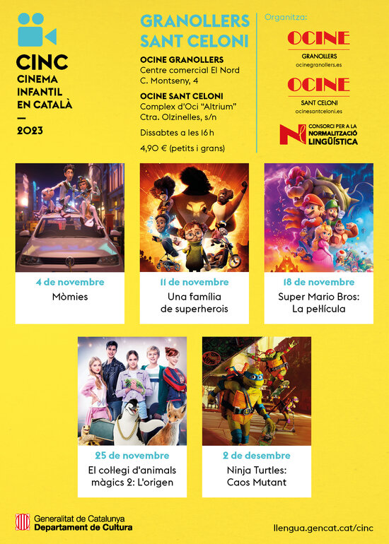 El CINC, el programa de Cinema Infantil en Català que impulsa la Secretaria de Política Lingüística amb la col·laboració del Consorci per a la Normalització Lingüística i d'ajuntaments i consells comarcals, torna al Vallès Oriental aquest novembre.