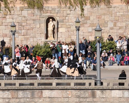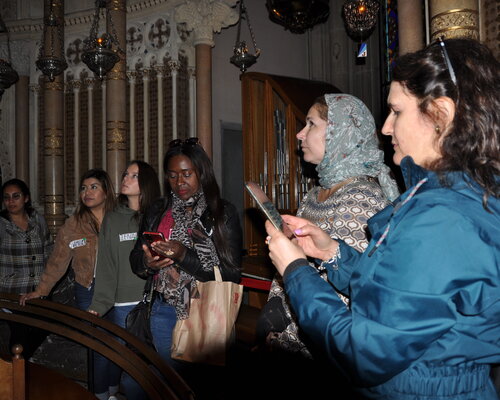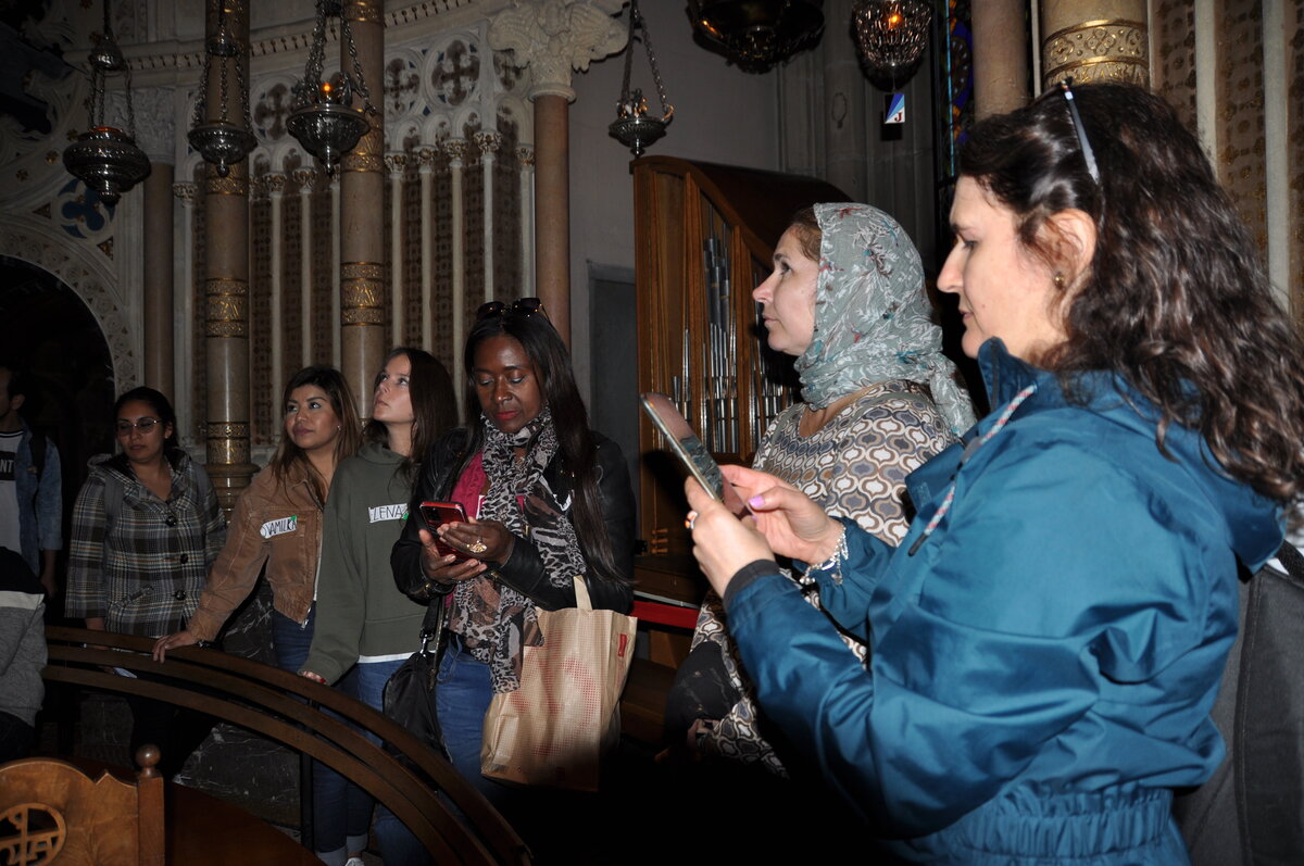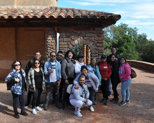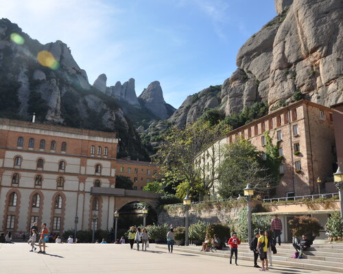 Quan van arribar, en primer lloc, van visitar l'espai audiovisual, un espai per conèixer els principals centres d'interès que ofereix la muntanya de la mà d'un guia. Seguidament, van fer una excursió fins a l'ermita de Sant Miquel, on van dinar. Després van baixar fins a la basílica per a visitar-la i van poder pujar al cambril, alguns fins i tot van encendre una espelma "per aprovar català", van dir. A continuació, i després de fer-se la foto de grup, van tenir una estona lliure per anar a les botigues o fer qualsevol cosa que els vingués de gust.