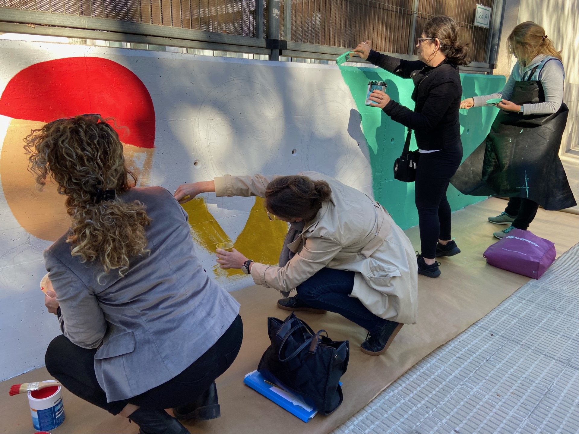 Els alumnes del CNL de l’Àrea de Reus pinten un mural amb la il·lustradora Berta Artigal que mostra el català com a llengua de trobada
