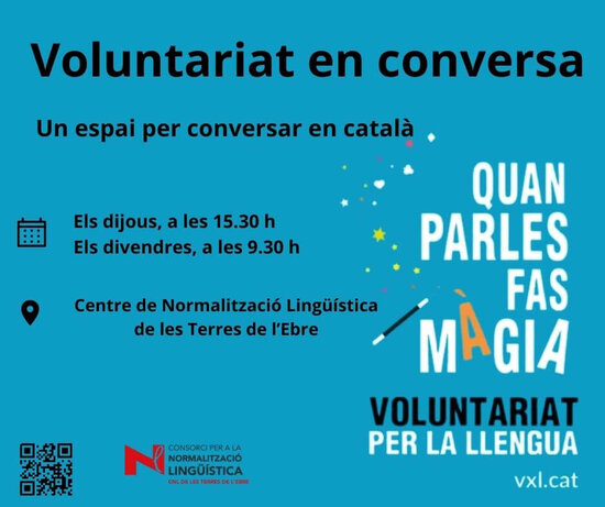 El mes de febrer començarà l'activitat Voluntariat en conversa organitzada pel Centre de Normalització Lingüística de les Terres de l'Ebre (CNLTE). Es tracta de sessions adreçades a persones que tenen coneixements bàsics de català i volen adquirir fluïdesa a l'hora de parlar-lo.
