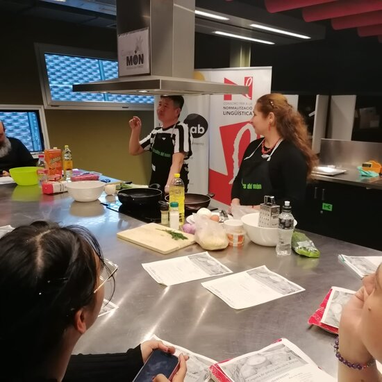 En aquest taller l'alumnat ensenya a cuinar plats típics de les seves cultures d'origen. En aquesta edició en Liu Yusheng (la Xina) i l'Olga Ladika (Ucraïna) van ensenyar l'alumnat d'altres cursos i persones usuàries de la biblioteca a preparar un plat típic de la Xina (panada de vedella) i un d'Ucraïna (coqueta de patata amb salsa).