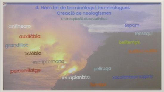 Xocofantasmagòric; escriptòman,escriptòmana i belltemps són les propostes finalistes dels grups de l’Institut Gallecs, l’Institut Mollet i l'Institut Vicenç Plantada, respectivament, que han participat en el concurs El Meu Neologisme, com a treball previ de la xerrada "Sense termes no hi ha coneixement", oferta pel TERMCAT.