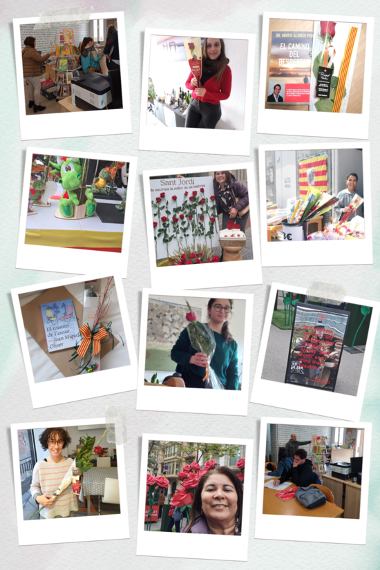 I dimecres, 24 d'abril, amb aquesta fotografia, tots els alumnes han explicat com han passat la diada de Sant Jordi. Amb aquest pretext fotogràfic, els alumnes han pogut expressar-se en català i, fins i tot, debatre.