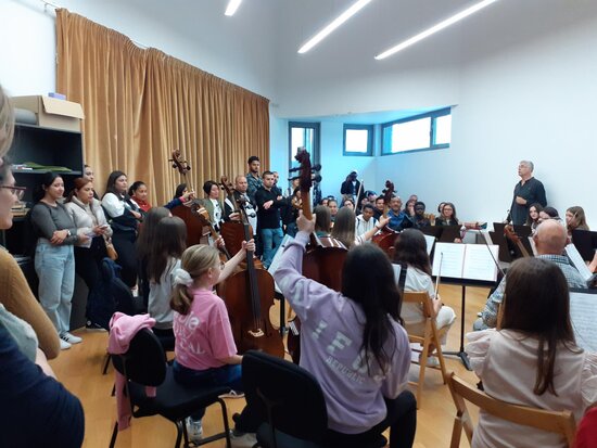 Seguidament, els assistents van poder veure un assaig d’orquestra en el qual el director Albert Bardolet, cap d’estudis de l’entitat, els va fer una explicació bàsica dels instruments de corda fregada que componien el grup. Els alumnes van mostrar interès i van poder fer algunes preguntes tant al director com a alguns components de l’orquestra, que va interpretar una peça d’un proper concert que han de fer.